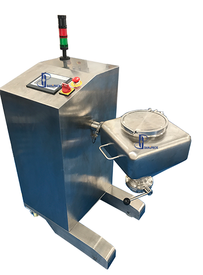 實驗室型混合機整機裝于可移動式的底座上。主要部件包括機架、回轉(zhuǎn)系統(tǒng)、電氣控制系統(tǒng)、料斗等。錐形混合料斗主要由斗體、斗蓋及卡箍、蝶閥等組成。